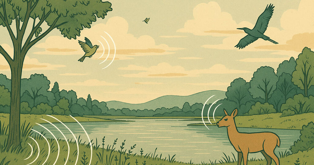 La bioacoustique est une discipline scientifique (liée aux fréquences dans la nature et la science moderne) qui étudie les émissions sonores des animaux et leurs effets. Les baleines, par exemple, émettent des infrasons sur de très longues distances pour communiquer et se repérer. Les chauves-souris utilisent l’écholocation (ultrasons) pour chasser. Les oiseaux chantent dans des fréquences variées, parfois affectées par le bruit ambiant. Des chercheurs ont mis en évidence que, dans les villes, certains oiseaux adaptent la hauteur de leur chant pour se faire entendre au milieu des voitures et des machines.